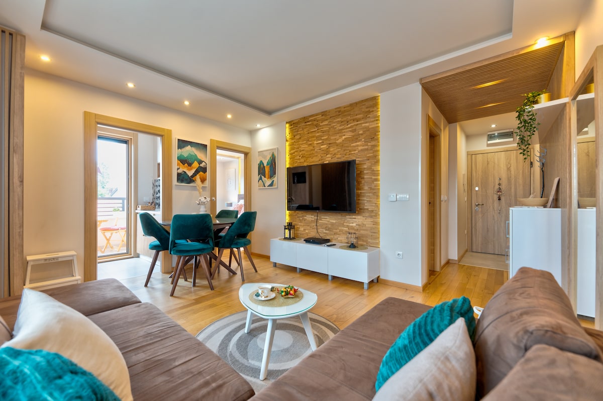The Zlatibor area is a mountain paradise. As you cruise into the complex amongst the tall pine trees, you will immediately feel relaxed. When you enter our brand new apartment you'll get that nice-to-be-home feeling. This brand new, one-bedroom comes fully equipped--fireplace included. Drop down on the premium mattress designed to give you that sleep like a baby night. The building is a secured building with free parking in front. You'll be just steps away from the town center and all the action