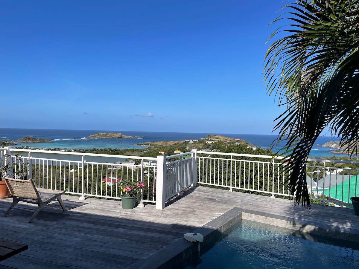 Villa neuve, très agréable et reposante, avec magnifique vue sur la baie de Petit Cul de Sac. Ce logement est plein de charme avec sa petite case traditionnelle St Barth (3ème chambre), idéale pour un séjour en famille ... Il est composé d'une cuisine équipée avec salle à manger et petit salon extérieur donnant sur la piscine et la vue mer. Un espace salon climatisé (TV). 2 chambres, dressing et petit bureau, 2 salle de bains. Vous vous sentirez comme chez vous !