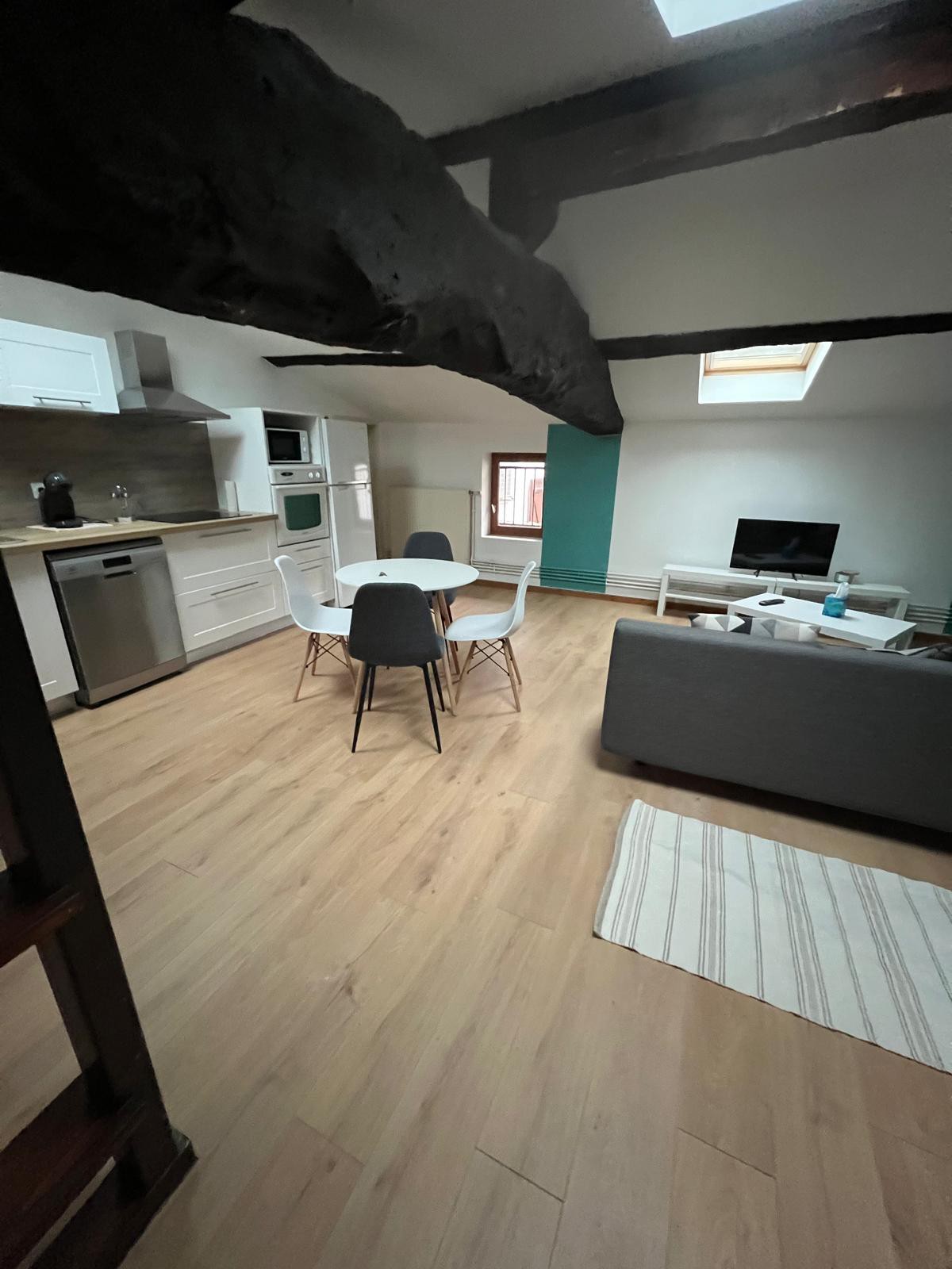 Godetevi un appartamento ristrutturato, climatizzato e decorato con opere d'arte nel cuore del centro storico. Tutto qui è fatto per il vostro comfort e il vostro benessere! Previsto per un massimo di 6 persone. Il soppalco è più adatto ai bambini o alle persone molto agili. offre una bella vista sulla valle della Saona. Negozi nelle vicinanze e Voie Bleue sulle rive della Saona.