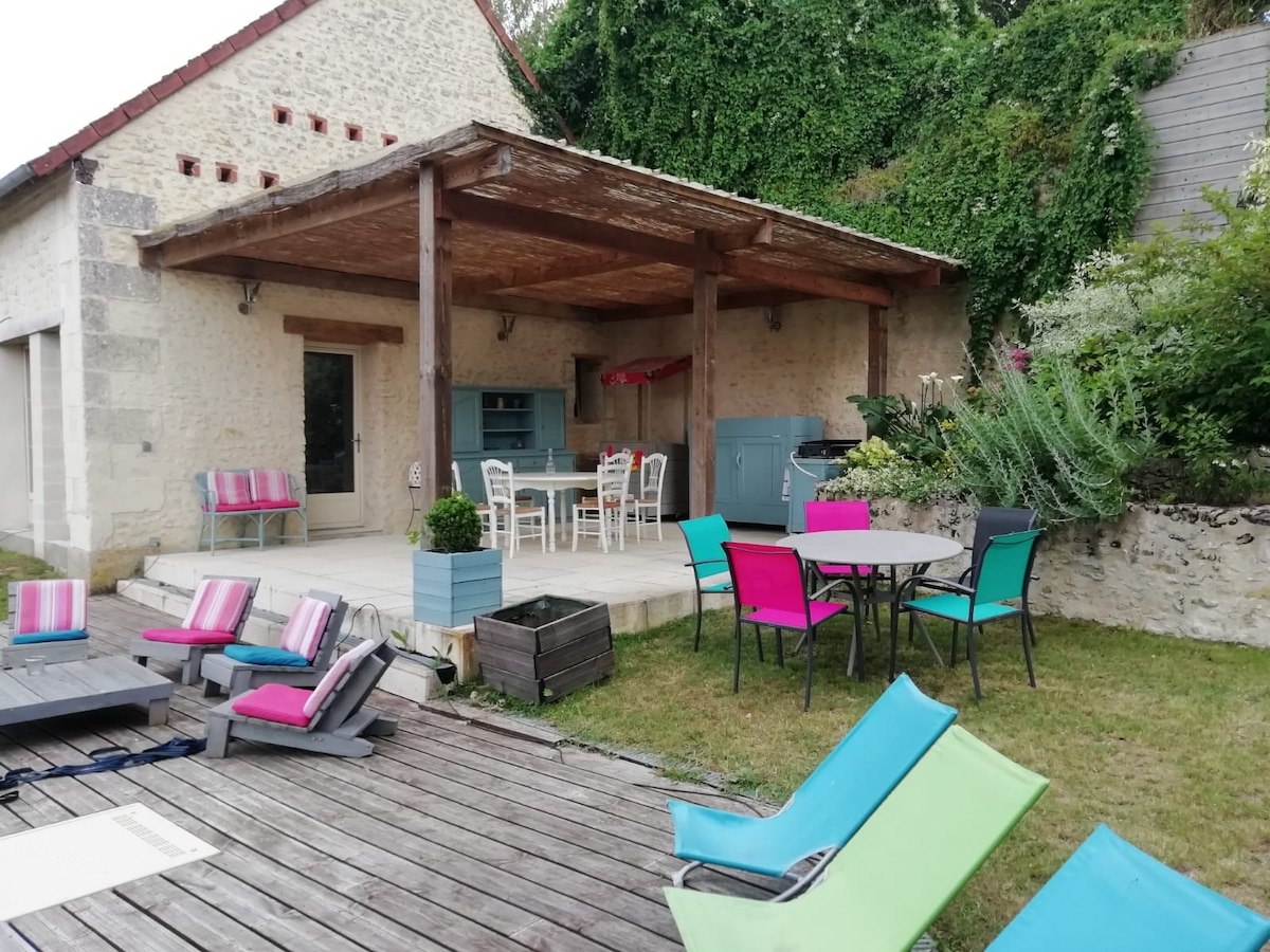 *Tutto nuovo, tutto bello* Nel cuore dei vigneti della Turenna, La Maison d'à Coté si trova in un ambiente tranquillo e verdeggiante, vicino allo Zoo di Beauval (20 min), al Castello di Chenonceau (10 min). Avrete a disposizione una cucina completamente attrezzata, un soggiorno/camera da letto che può ospitare fino a 5 persone e un bambino e un bagno privato. Potrete godervi la terrazza e il barbecue in uno spazio sicuro e verdeggiante. In più: parcheggio privato gratuito e un flipper!