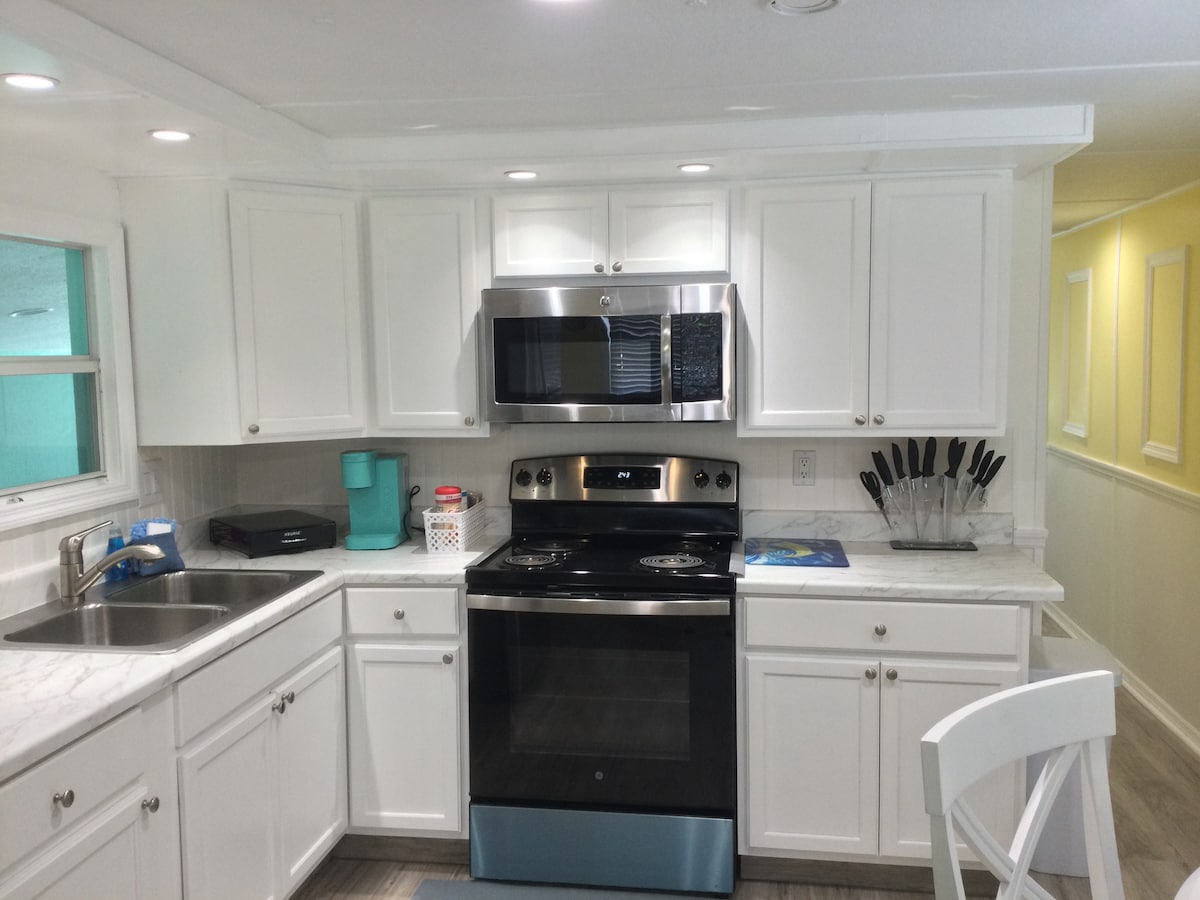 Benvenuti nella nostra casa sul lungomare con accesso diretto al golfo! Situata a St.James City, Pine Island, questa casa splendidamente ristrutturata offre uno spazioso stile open concept con due camere da letto (Camera 1: Letto matrimoniale +Camera 2: Letto a castello (Queen Bottom+Full Top) e due bagni. Tana con divano letto queen size. Sanibel e Captiva Beach sono a breve distanza in barca, la zona offre una pesca di prim 'ordine. Marina situata sullo stesso canale, la casa ha un sollevatore per barche e un molo a cui ormeggiare. SUP e kayak tandem