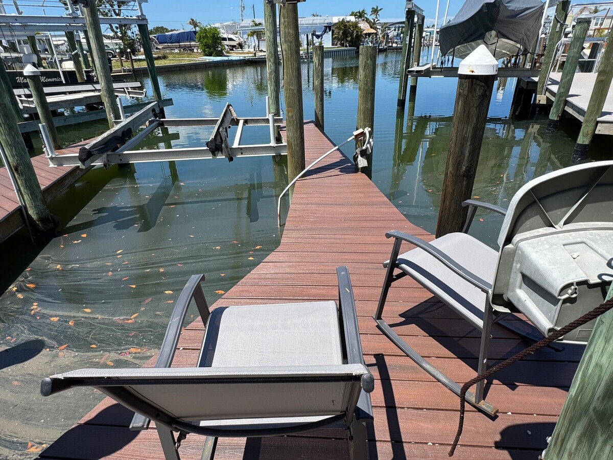 A pochi minuti dall'oceano, 2 camere da letto + studio, 3 bagni, piscina privata, fine del canale Monroe, sollevatore per barche fino a 21 piedi, osservazione dei delfini, pesca direttamente dal molo, kayak, gita in barca a pochi minuti da Sanibel e Fort Myers Beaches, tutti i servizi di casa + giochi da tavolo, Playstation, 2 biciclette per adulti con caschi. Rilassati, goditi il sole all'aria aperta con un bar e una piscina privata: ammira tramonti, sorseggia cocktail, avvisa i delfini e pesca dal molo. Vieni a goderti la vita sul lungomare al suo meglio!