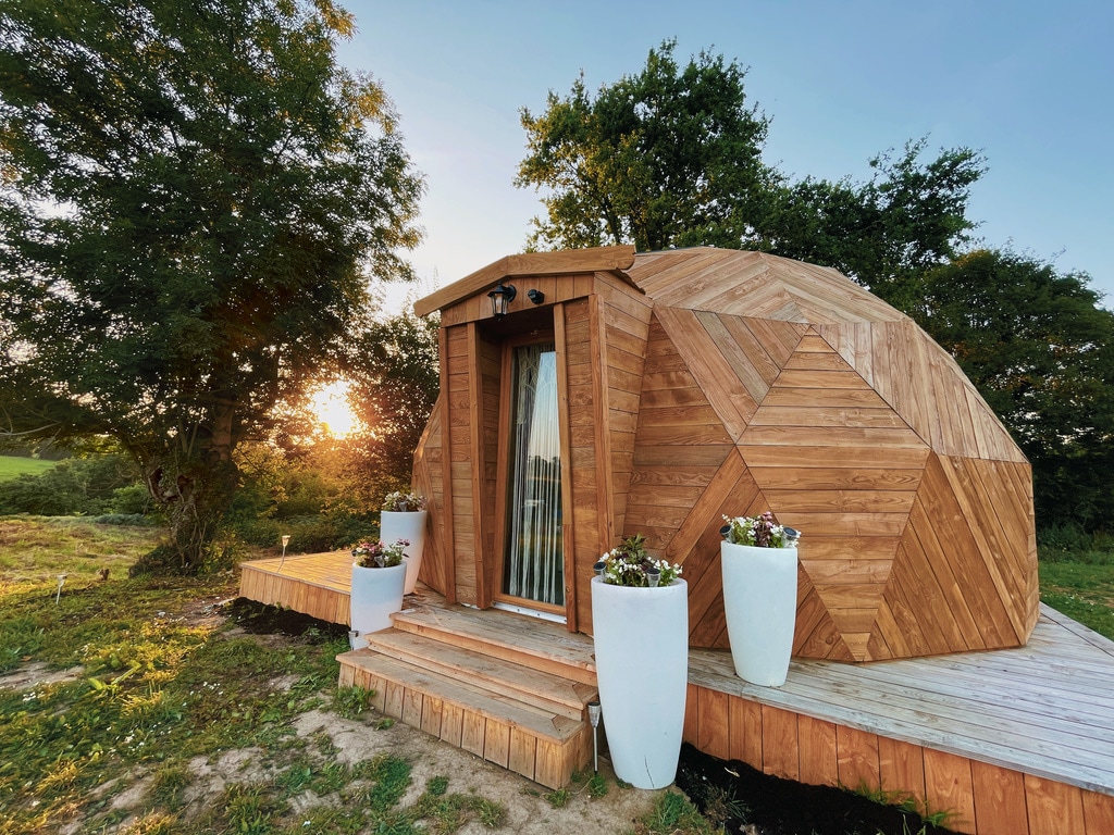 Vivete un'esperienza unica in fattoria nella nostra cupola geodetica in legno, nel cuore della natura normanna con una vista mozzafiato sulle stelle. La nostra cupola geodetica è progettata per ospitare comodamente fino a 4 persone. È la sistemazione perfetta per una vacanza in mezzo alla natura e per godersi la tranquillità della campagna. Unitevi a noi per un'esperienza autentica e arricchente in Normandia. Prenota subito il tuo soggiorno da noi per una vacanza indimenticabile!