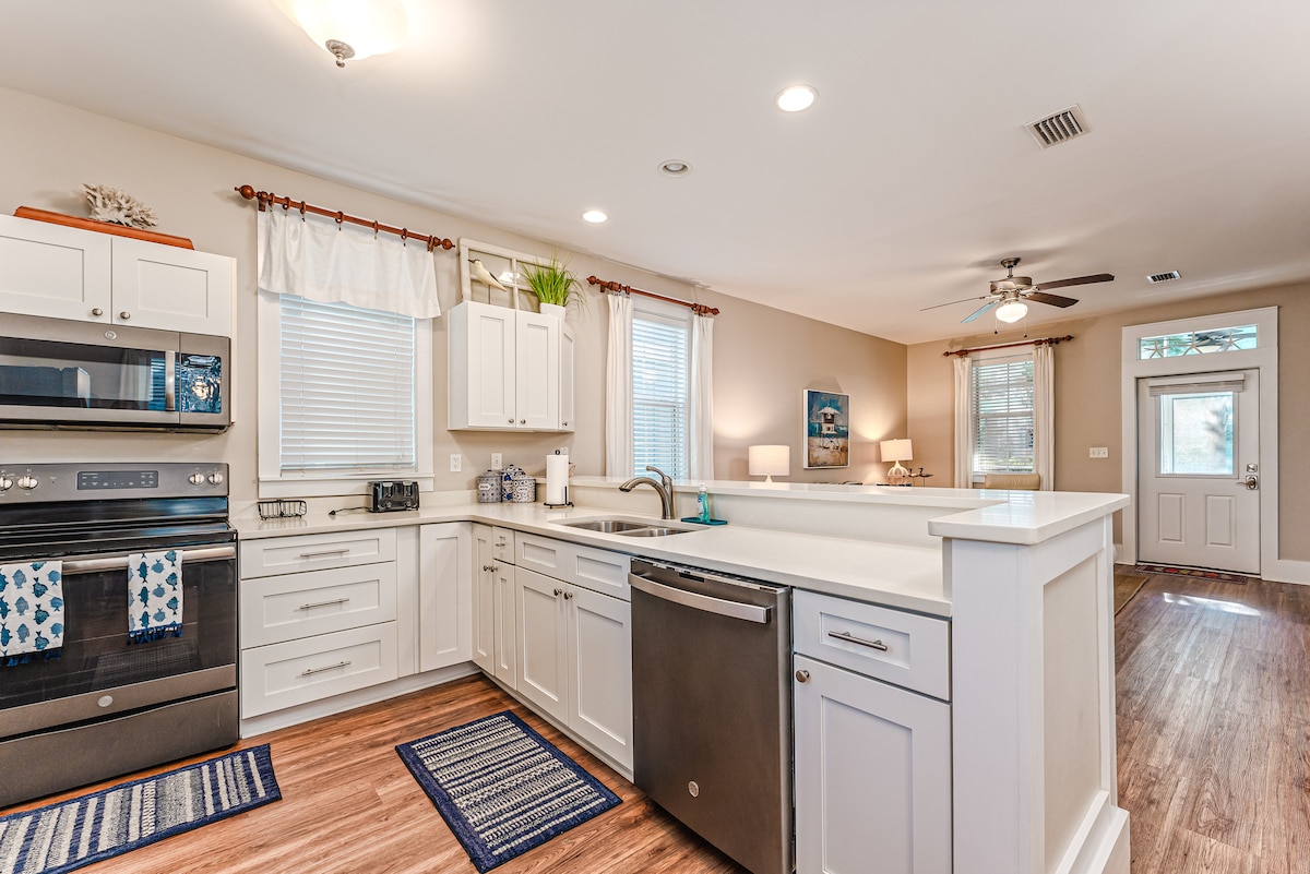 Completamente attrezzata, così puoi concentrarti sulla spiaggia e sulle persone che ami! - Passeggiata in spiaggia - Panorama d'acqua - Doccia esterna e pista ciclabile che attraversa il Capo - A piedi dal parco con campi da pickleball e pallavolo, oltre all'accesso in kayak alla baia - A pochi minuti dalle rampe per le barche e dai noleggi di golf cart - Cortile recintato, braciere a gas, divertenti giochi all'aperto e una configurazione adatta ai bambini. - Piscina presso l'area ricreativa Billy Joe a Rish, a 10 minuti di auto dalla casa Il miglior rapporto qualità-prezzo e la migliore posizione nella zona!
