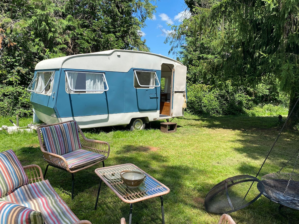 Questa deliziosa roulotte vintage è stata ristrutturata con dettagli romantici. È situato su un bellissimo grande campo proprio accanto al piccolo fiume a Moulin Scalagrand, con la sua piscina naturale, l'orto e il giardino di forrest. È possibile gustare la prima colazione o la cena 'table d'hôte' preparata con prodotti fatti in casa al 100%. Elettricità, piano cottura a 2 fuochi, piccolo frigorifero, Nespresso, bollitore elettrico. Semplice ma completo. Un letto 140 x 200 cm. Il letto sarà composto al tuo arrivo, 2 asciugamani p.p.