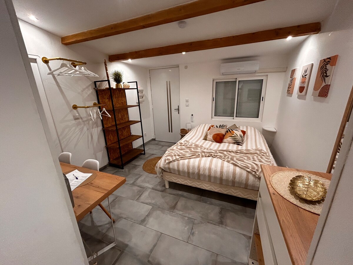 Questo alloggio elegante è perfetto per scoprire la Venezia provenzale. A 10 minuti dal centro della città, dalle rive dello stagno. A 20 minuti dal mare, avete un centro commerciale a 10 minuti. Si noti che siamo sul fianco della collina, ci sono scale per arrivare al monolocale e scale per il giardino.