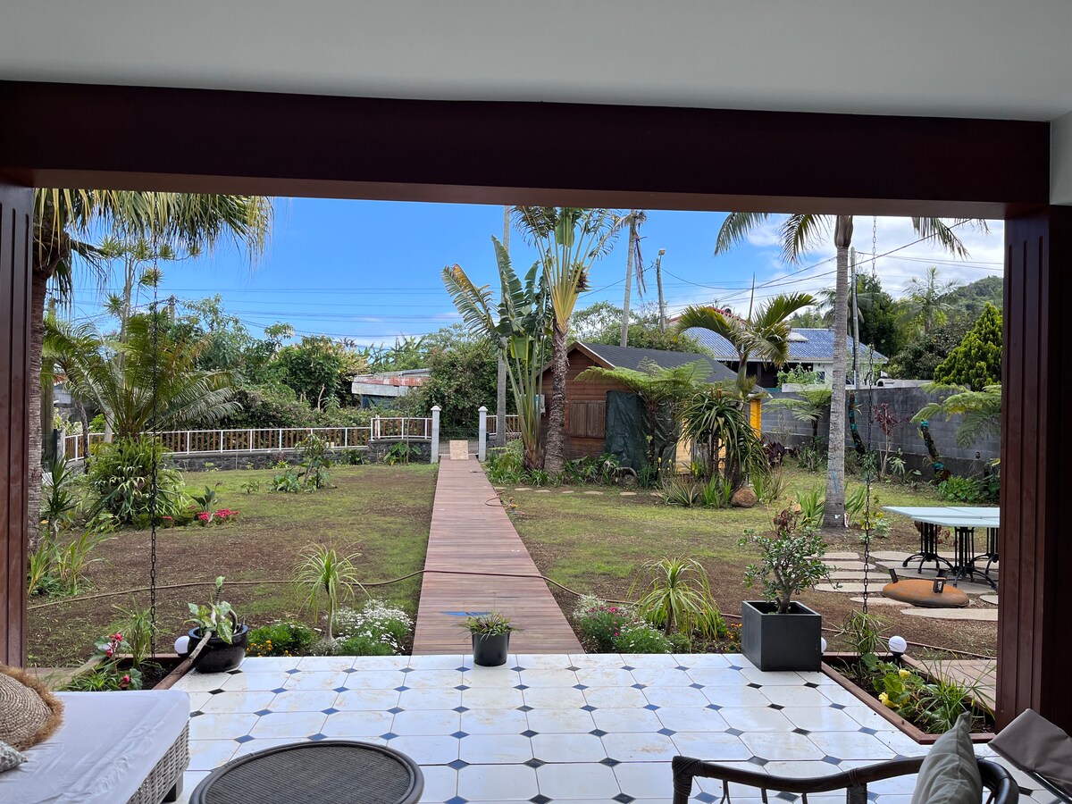 Arroccato in un lussureggiante giardino tropicale di agrumi, piante profumate e specie endemiche con una splendida vista sulla costa occidentale e sulle pendici del Maïdo e del grande Benard. Venite a scoprire questo cambiamento di scenario a 20 minuti dalle spiagge e a 45 minuti dal Maido, a 5 minuti dal museo di Villele e a 3 minuti dalla salina Les Hauts. Parcheggio custodito dal nostro servizio di sicurezza canina (adorabili). Cottage indipendente dalla nostra casa principale, saremo lieti di accogliervi per un aperitivo di benvenuto!