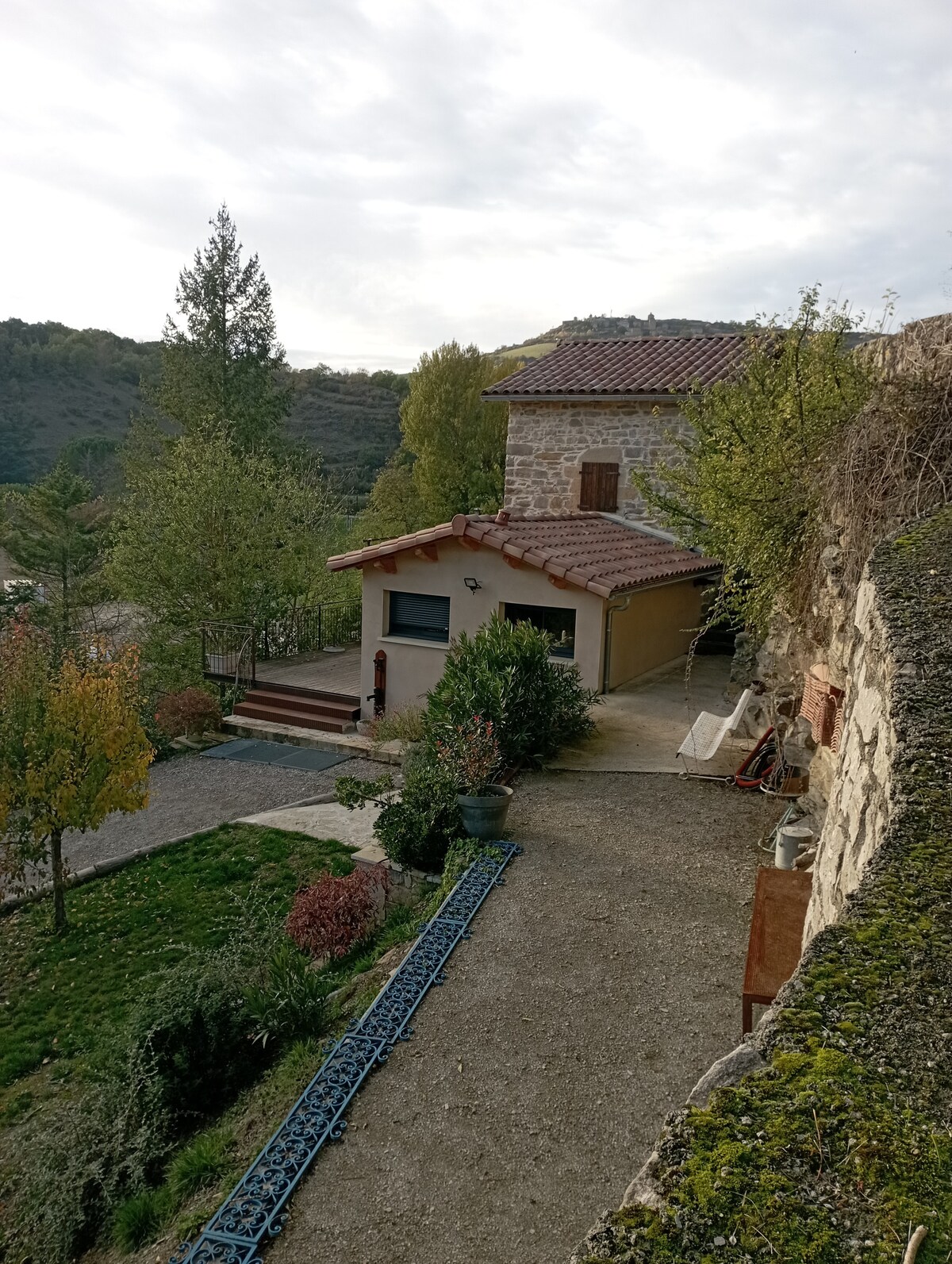 Cottage restaurato, immerso nella natura, grande terrazza soleggiata con vista sul fiume, a 10 minuti da Millau, Posto auto sicuro. Vista panoramica senza di fronte. Biancheria da letto nuova, lenzuola fornite, portare gli asciugamani . Cucina attrezzata, prodotti per la casa. Stufa a pellet. Barbecue. 6 posti letto, Internet, TV.