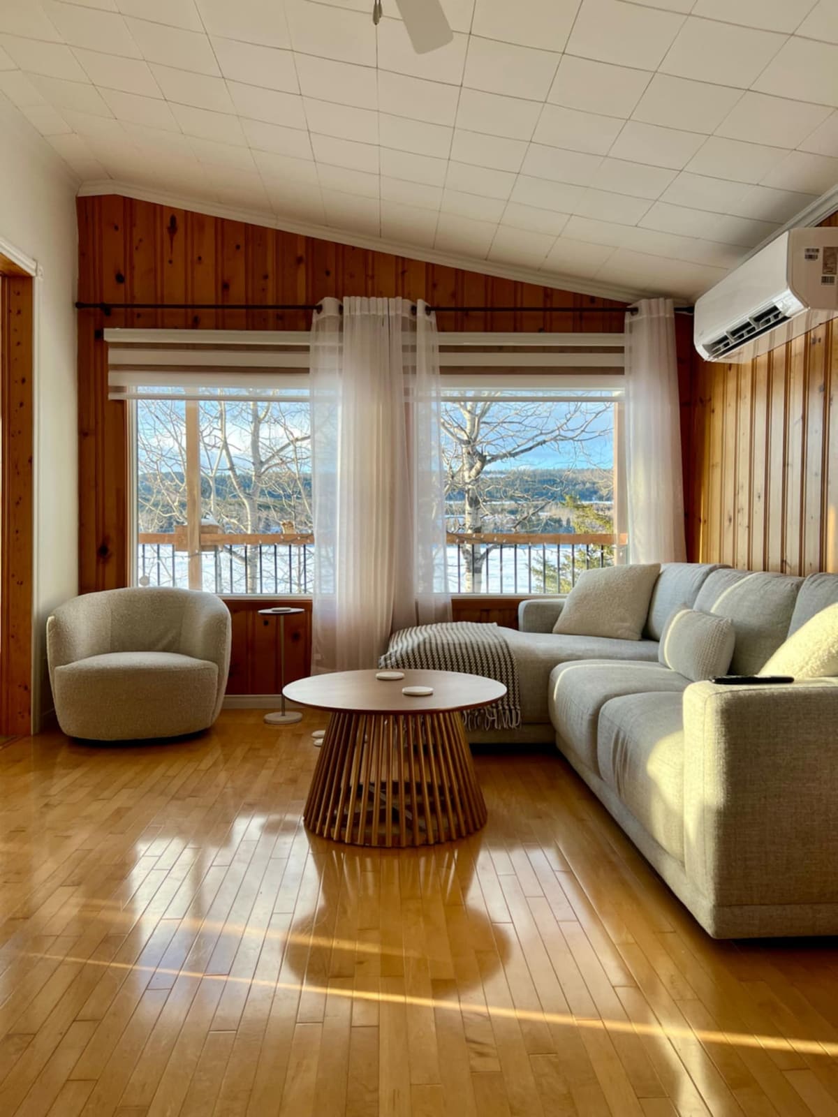Benvenuti a Le Havre du Lac, un accogliente chalet immerso nella foresta, sulle rive del lago di St-Mathieu-de-Rioux. In inverno, il posto si trasforma in un vero e proprio piccolo rifugio: paesaggio innevato, uscite con le ciaspole sul lago ghiacciato e ritorno al caldo dopo una giornata sugli sci. Qui, ogni alba e tramonto invernale si vive in prima fila. Soggiornerete in un comfort assoluto: cucina e bagno ristrutturati, soggiorno con vista sul lago e biancheria da letto accogliente. A 5 minuti dal Mont St-Mathieu.
