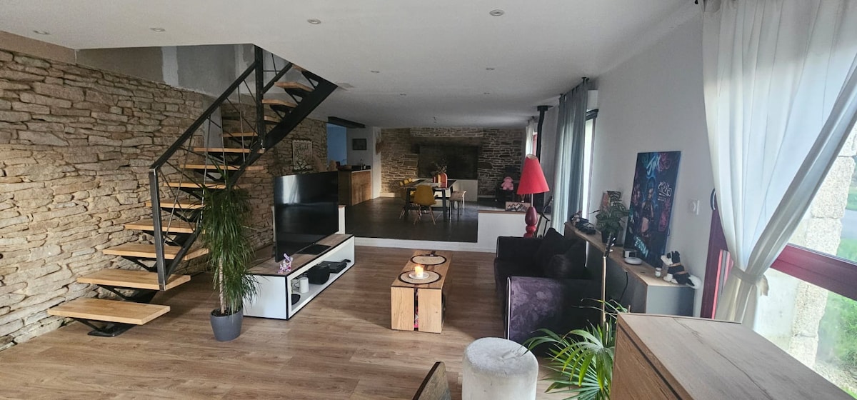 Regione della Cornovaglia, tra terra e mare, cottage per 4 persone, 20 minuti dalla spiaggia "les sables blancs" di Concarneau in un ambiente tranquillo situato a Cadol comune di Melgven.Penty ristrutturato con tutti i comfort su ampio giardino recintato, alberato e fiorito.
