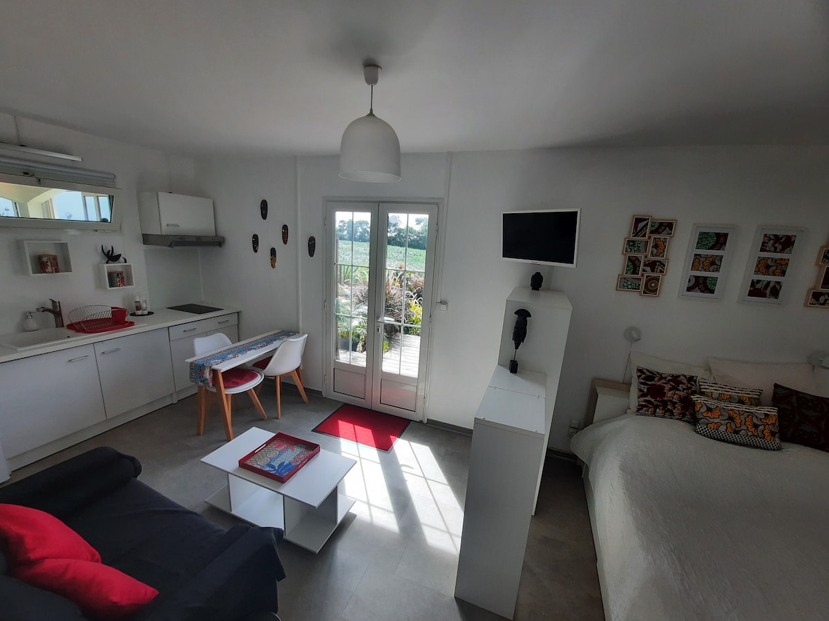 Venite a scoprire l'Est dell'Isola della Réunion in questo affascinante monolocale indipendente attrezzato. Annesso al nostro alloggio principale, è arredato in legno di tamarindo e completamente attrezzato. Ideale per le vostre piccole fughe, le vostre escursioni a L'Est dell'isola o per visitare (Salazie, Hellbourg, le cascate Niagara, voile de la mariée, cascata bianca, foresta Dioret, L'Anse des cascade a ste Rose, bacino blu, Mafate ect...) Amiamo cucinare e proponiamo anche piatti su prenotazione, succhi di frutta freschi ecc...