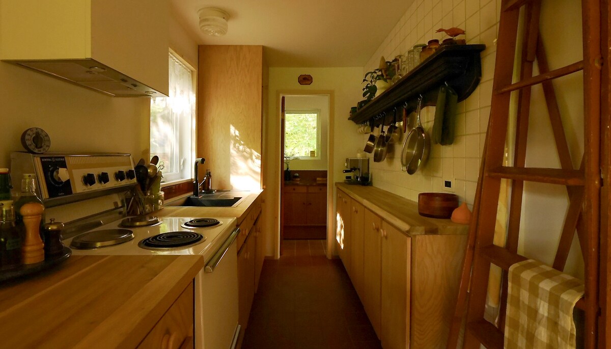 Il Perché-sur-la-rivière è un affascinante shack in legno rotondo, circa 1962, completamente restaurato, completamente a sud. Letteralmente arroccato sull'acqua. Veranda per prendere il sole, mangiare, dormire. Alberi giganti. 45 minuti da Montréal. Luminoso, tranquillo. Passerella pedonale e ciclabile verso negozi, ristoranti e boschi. Pista ciclabile alla porta. Per riposo, telelavoro, creazione, attività all'aperto. --BBQ in loco -- Escursioni e sci di fondo nei dintorni