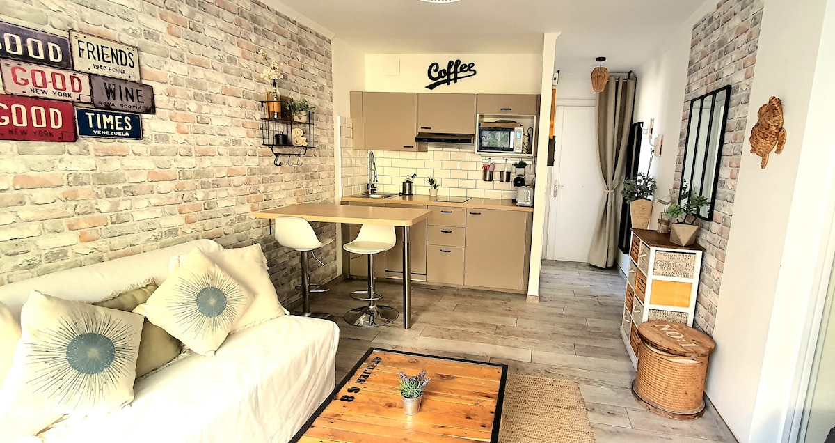 Monolocale ristrutturato con una cucina attrezzata, un bagno con doccia e servizi igienici. Per la notte, un letto 140 con materasso, coperte e cuscini aggiuntivi Per il telelavoro wi-fi e una stampante . Ripostiglio per gli effetti personali. Ingresso privato su un solo livello. Possibilità di noleggiare biciclette elettriche. Prenotazione sul posto.