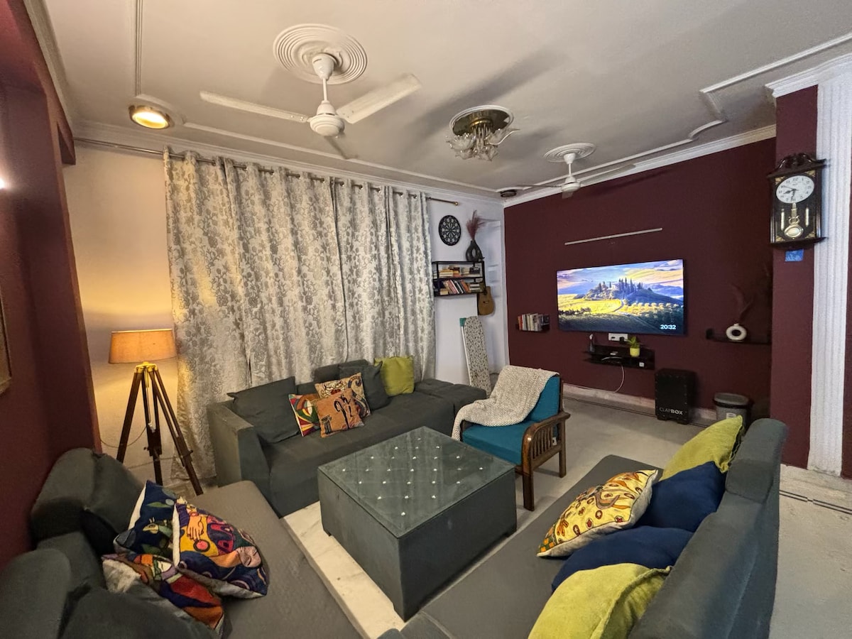 ख़्वाबघर 108-Un angolo accogliente e un rifugio perfetto per chiunque cerchi un'atmosfera familiare e un alloggio arredato. Situato nella Greater Kailash, ha tutto il necessario a portata di mano, con il mercato principale a 300 metri, la metropolitana a 100 metri e un piccolo balcone annesso dove sedersi e rilassarsi! L'alloggio è servito da Uber, Zomato e altre app di consegna. Altri servizi: geyser, aria condizionata, frigorifero, forno a microonde, distributore d'acqua, gas, utensili di base, TV, wifi. Non vedo l'ora di accoglierti!