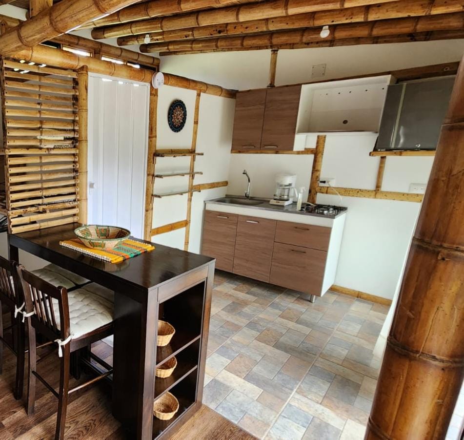 Rilassati in questo accogliente rifugio di bambù circondato dal verde, dall'aria fresca e dal canto degli uccelli. Goditi tranquille passeggiate, giri in bicicletta (noleggiamo), birdwatching e, se sei fortunato, avvistamenti di bradipi nel loro habitat naturale. Questa baita ecologica offre comfort e tranquillità per ricaricare la tua anima. A soli 15 minuti di auto dal Salento, è la meta ideale per immergersi nella magia della regione del caffè colombiano. Perfetto per gli amanti della natura in cerca di serenità. Lascia che la magia della regione del caffè ringiovanisca la tua anima!