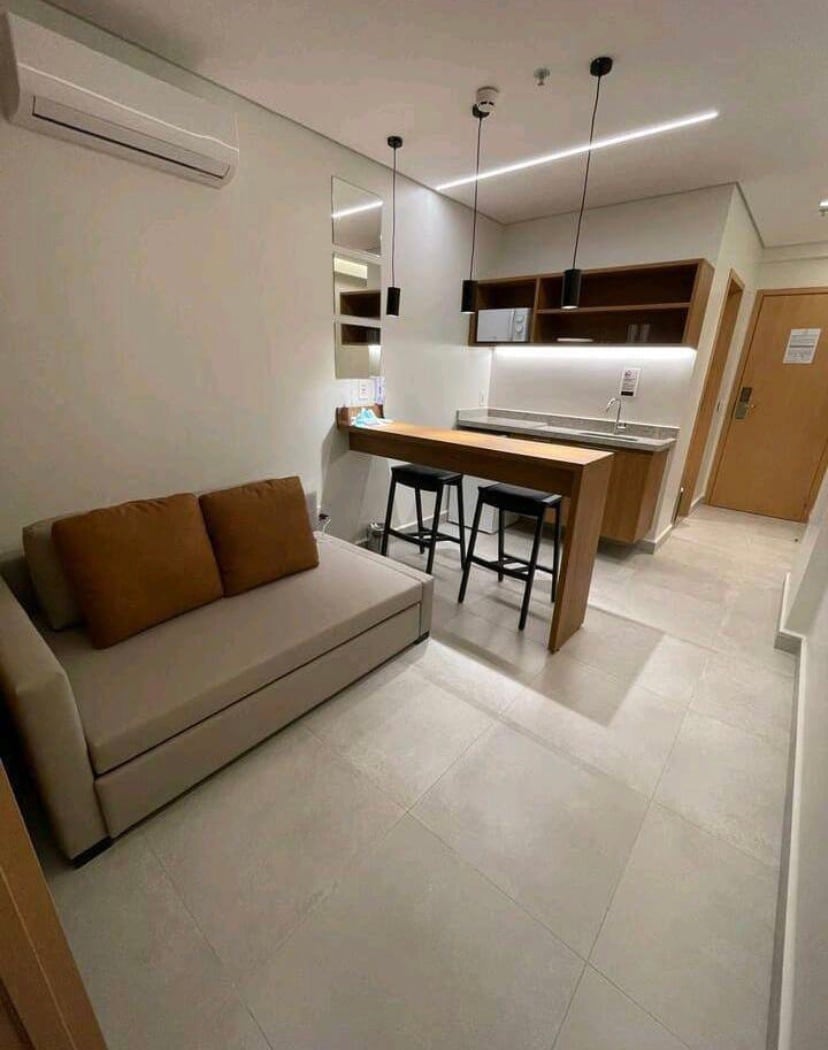 Divirta-se com toda a família neste lugar cheio de estilo. Apartamento smart Apartamento de 30m² com ambiente de cozinha americana e sala integrados, sala com sofá cama, Smart TV 40” e ar condicionado, cozinha com balcão e banquetas, micro-ondas, frigobar e utensílios básicos. Quarto com cama de casal, Smart Tv 40”, ar condicionado e varanda. Apartamento possui um banheiro, amenities e enxoval completo. Wi-fi gratuito no apartamento e áreas sociais. Capacidade máxima de 4 adultos.