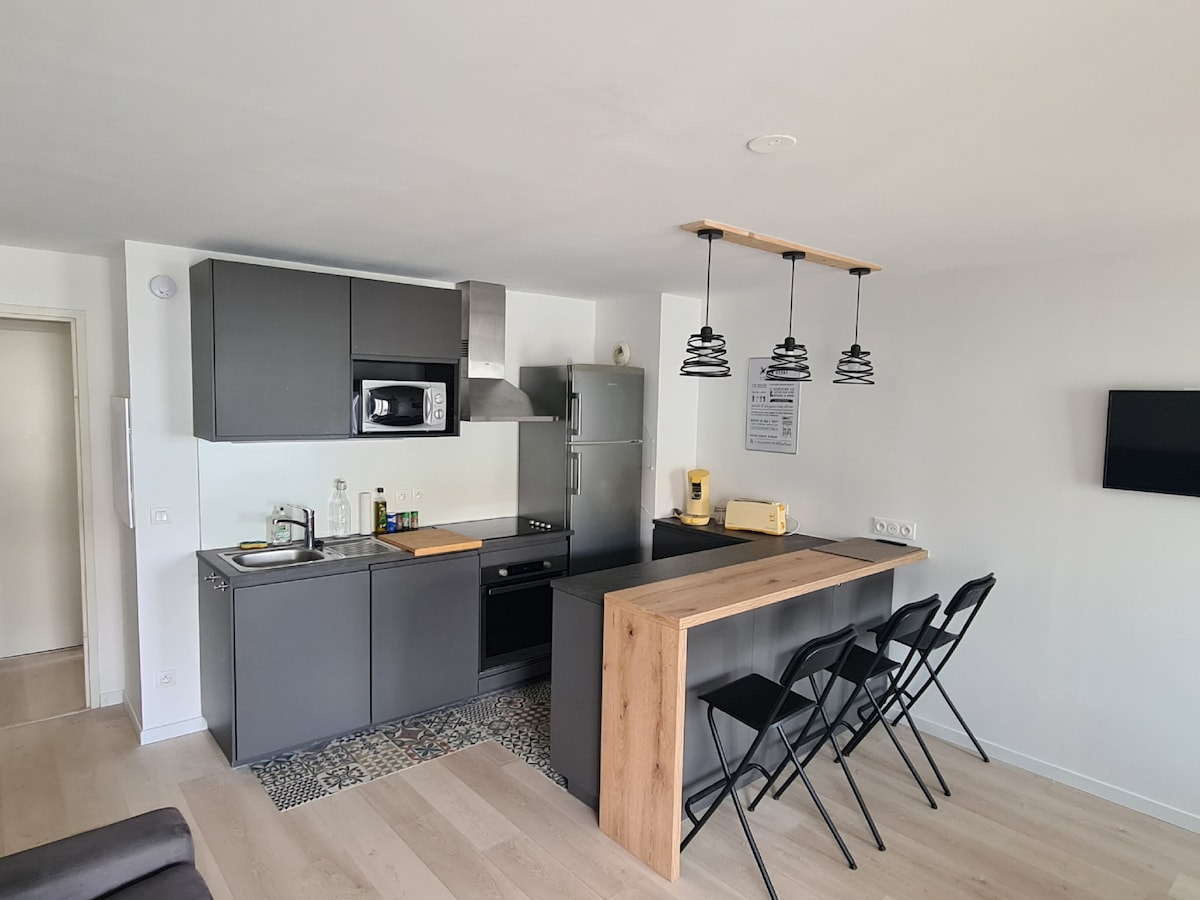 Il mio alloggio è vicino al triangolo d'oro (700m da Place Gambetta), al centro commerciale Mériadeck, alle linee F del tram (stazione-aeroporto) e A, alle stazioni di bike .. Il nostro alloggio si trova in una zona tranquilla. È bello, ben attrezzato, moderno, connesso e confortevole: vi piacerà! Il vostro alloggio è adatto a viaggiatori d'affari, a una coppia con 1 bambino max o 3 adulti senza figli. È classificato come alloggio turistico ammobiliato 4*.