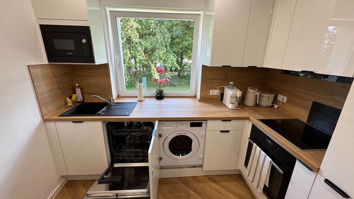 Alloggerete in un moderno e completamente attrezzato appartamento con 2 camere da letto (circa 50 mq) con Internet, TV satellitare, aria condizionata, cucina (piano cottura, forno, frigorifero-congelatore, bollitore, macchina per il caffè, forno a microonde, SodaStream), vasca da bagno e una terrazza sul tetto di 22 m², ingresso indipendente e posto auto per un'auto. Il divano è grande e accogliente, quindi sicuramente utilizzabile anche come un posto letto aggiuntivo. Sono disponibili 2 biciclette.