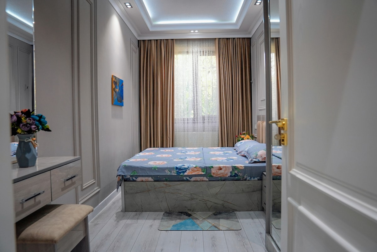 Ti diamo il benvenuto in questo incantevole appartamento con una camera da letto situato all'interno dell'edificio di nuova costruzione nel cuore di Smartcity, a Samarcanda. Comodamente situato al piano terra, l'accessibilità è un gioco da ragazzi senza bisogno di ascensori. L'appartamento vanta finestre dotate di zanzariere, che garantiscono serenità libere da ospiti indesiderati. Completamente arredato per soddisfare le vostre esigenze, dispone di servizi moderni tra cui aria condizionata, televisione e forno a microonde. Possiamo anche assisterti con la registrazione turistica.