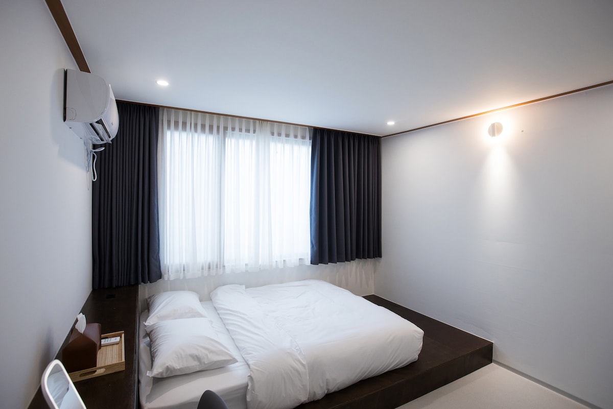 Salve, sono Dongmun Stay. Si tratta di un alloggio di recente apertura a 5 minuti di auto e 10 minuti a piedi dal mercato notturno di Dongmun. Soggiorna a un prezzo scontato! Dopo un tour del mercato notturno, fai una passeggiata lungo Ohyeon Dan-gil e raggiungi a piedi l'alloggio. Non esitare a mettere in valigia il cibo al mercato notturno e a mangiare a casa! Situato nel centro di Jeju City, vicino all'aeroporto, è comodamente situato a est e a ovest dell'isola di Jeju. Ci vogliono 10-15 minuti in auto dall'aeroporto di Jeju. Si trova a 25 minuti di autobus e gli autobus vengono inviati ogni 10 minuti, rendendo facile l'accesso anche se non si utilizza l'auto. Se scendi alla fermata dell'autobus Civic Center a 3 minuti dall'alloggio, puoi utilizzare l'alloggio comodamente. Sono disponibili vari alloggi per un massimo di 2-6 persone, quindi ti preghiamo di inviarci un messaggio in caso di domande. East Moon Dongmun Stay Chang