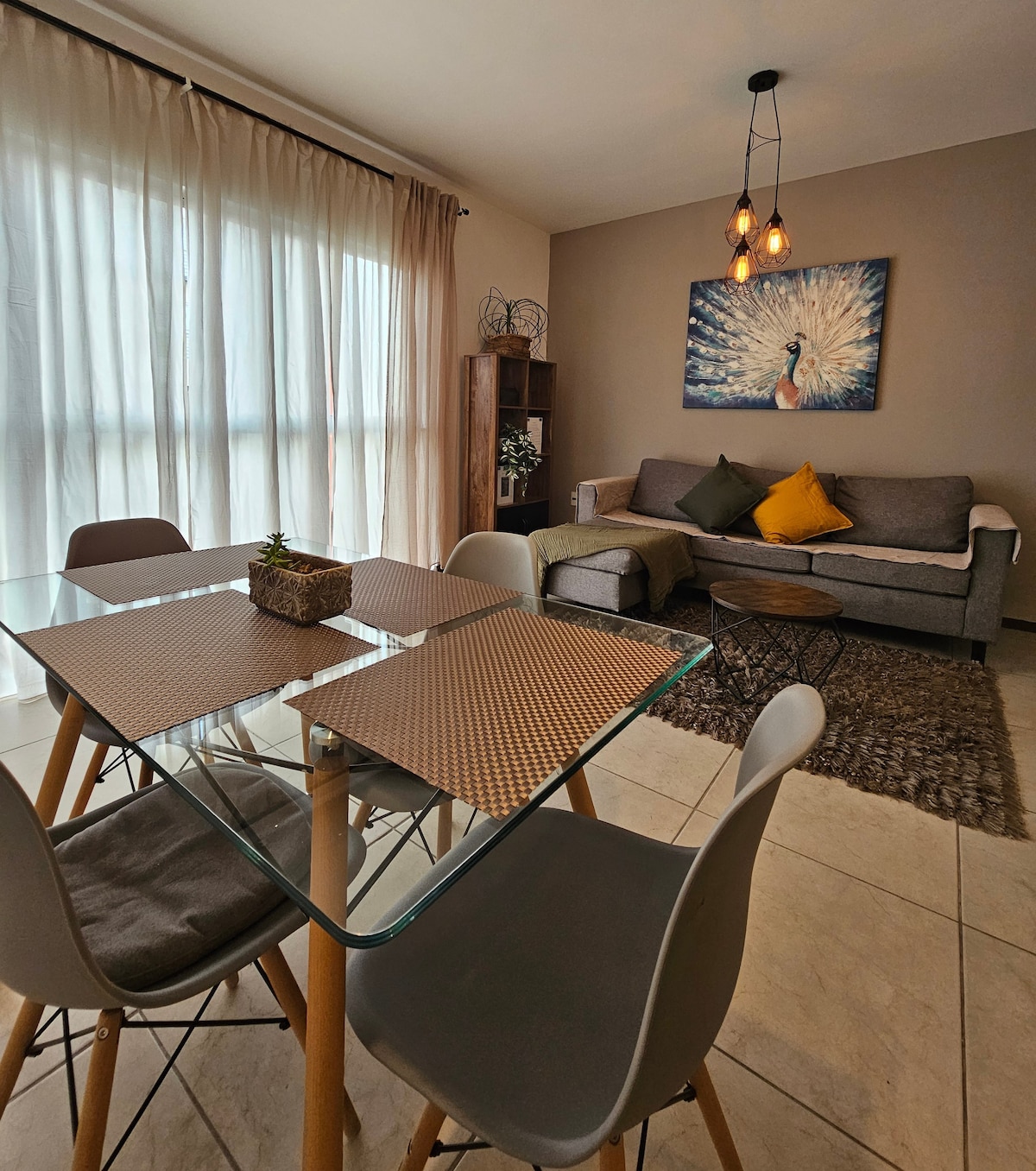 Appartamento spazioso e accogliente, ideale per lavorare con una connessione internet eccellente! 100 Megas. Due ampie camere da letto entrambe con aria condizionata, bagni completi, cabina armadio e ventilatore a soffitto. Sala TV dove può dormire una quinta persona. Soggiorno+sala da pranzo con una grande finestra e 4 ventilatori portatili per muoversi in qualsiasi area. La cucina attrezzata include piatti per 6 persone. Gli ospiti precedenti hanno elogiato il nostro appartamento per il suo arredamento elegante, i servizi confortevoli e la posizione privilegiata vicino a vivaci caffetterie e ristoranti.