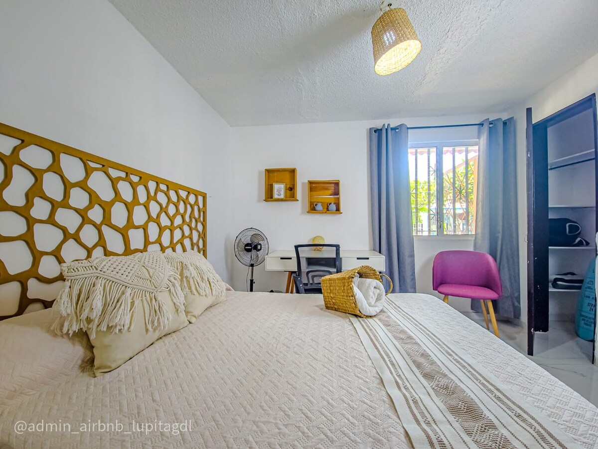 Confortevole casa su due piani per tutta la famiglia, a 15 minuti dalla stazione centrale degli autobus, a 15 minuti da Tlaquepaque, a 5 minuti dal centro commerciale, cinema, dispone di garage, solo per auto compatte, o è possibile parcheggiare in strada, 3 letti, internet, televisori, cucina completa con frigorifero, forno a microonde, utensili da cucina, lavatrice nel patio inclusa!