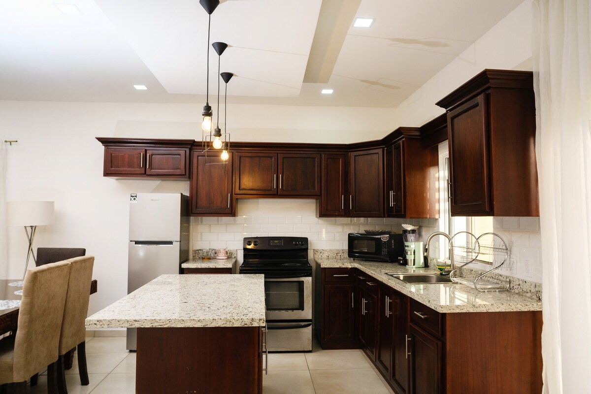 Rilassati con la tua famiglia in questo accogliente rifugio circondato da splendide viste sulle montagne. Ci troviamo a soli 25 minuti dall'aeroporto Ramon Villeda Morales, 45 minuti dalle spiagge di Tela e 5 minuti dal centro di El Progreso, il che rende la nostra casa un posto tranquillo ma vicino a tutto. A pochi passi troverete mini super e una piazza con ristoranti, farmacia, banca, caffè, dove potrete gustare i sapori locali.