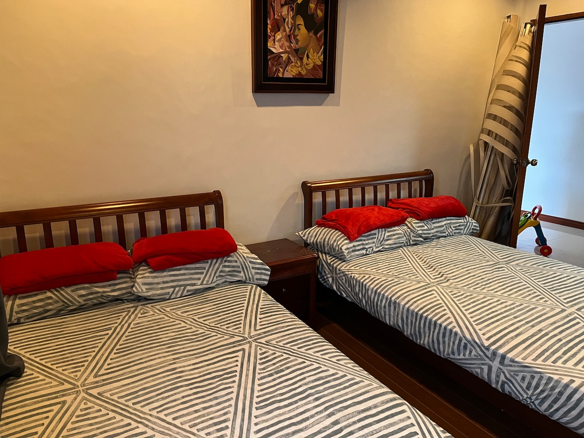 Questa piccola casa blu è semplice ma moderna. Ha una piccola stanza rilassante con letto matrimoniale e aria condizionata da 1 HP che ha la capacità di raffreddare l'intera casa se si lascia la porta della stanza aperta e si chiudono tutte le porte e le finestre. Puoi anche divertirti a guardare la TV con il nostro abbonamento Netflix premium. Abbiamo tutto il necessario all'interno della casa, porta solo i tuoi vestiti e cibi da cucinare o mangiare. Se hai bisogno di aiuto, viviamo accanto alla casa gialla, basta chiamare ad alta voce "ate" o "kuya"! Saremo lì.