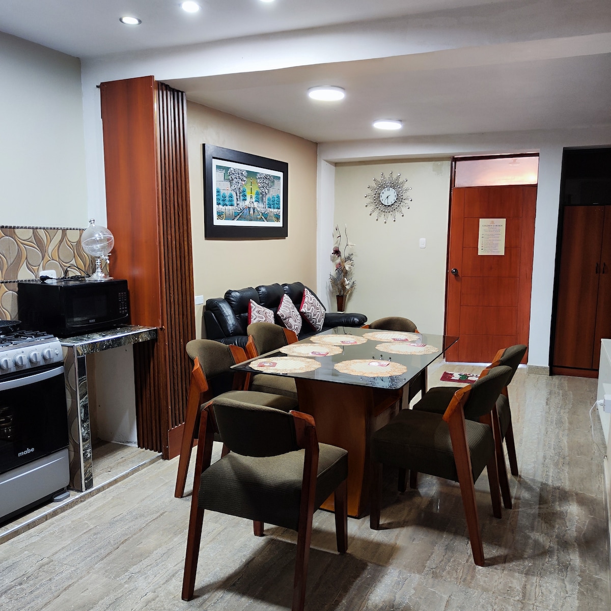 Disfruta de la sencillez de este alojamiento tranquilo y céntrico Mini departamento ubicado en el centro de Chachapoyas, a dos cuadras y media de la plaza de armas, y de los mercados Modelo y Requejo de la ciudad, así como de agencias de viajes y salidas de tours. Equipado con cocina y menaje, lavadora (sin costo adicional por el uso) y zona de tendido, con 1 cama queen y 1 sofá cama, TV y agua caliente, ideal para 4 personas, y siempre tendrán a su anfitriona atenta a cualquier necesidad🤗.