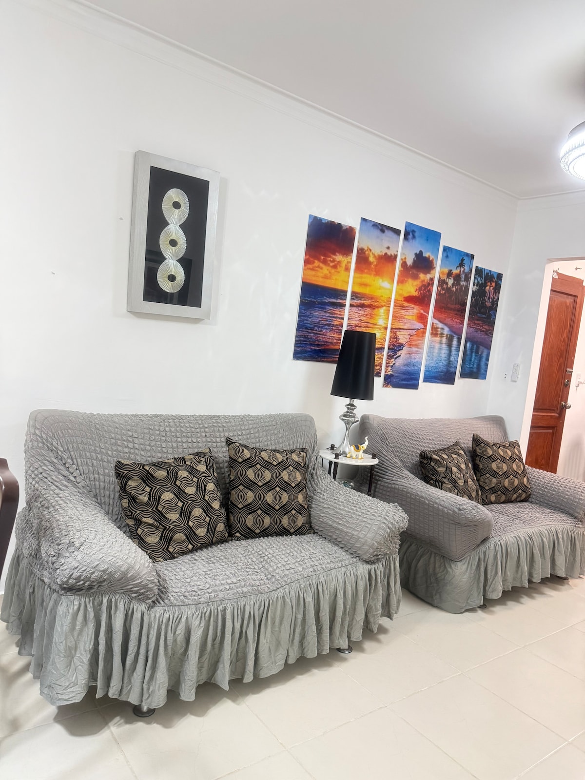 🏡En Santo Domingo Acogedor y elegante apartamento Disfruta de un apartamento moderno de 3 habitaciones y 1 lugar de trabajo, limpio bien decorado. Cuenta con una sala cómoda, comedor amplio , amplia terraza área de lavado ,cocina equipada. El baño es funcional y luminoso. posee una amplia terraza trasera, amueblada y equipada con BBQ, y equipo de ejercicios.perfecta para eventos, reuniones o simplemente relajarte al aire libre. Ideal para parejas, familias, viajeros de trabajo o vacaciones.