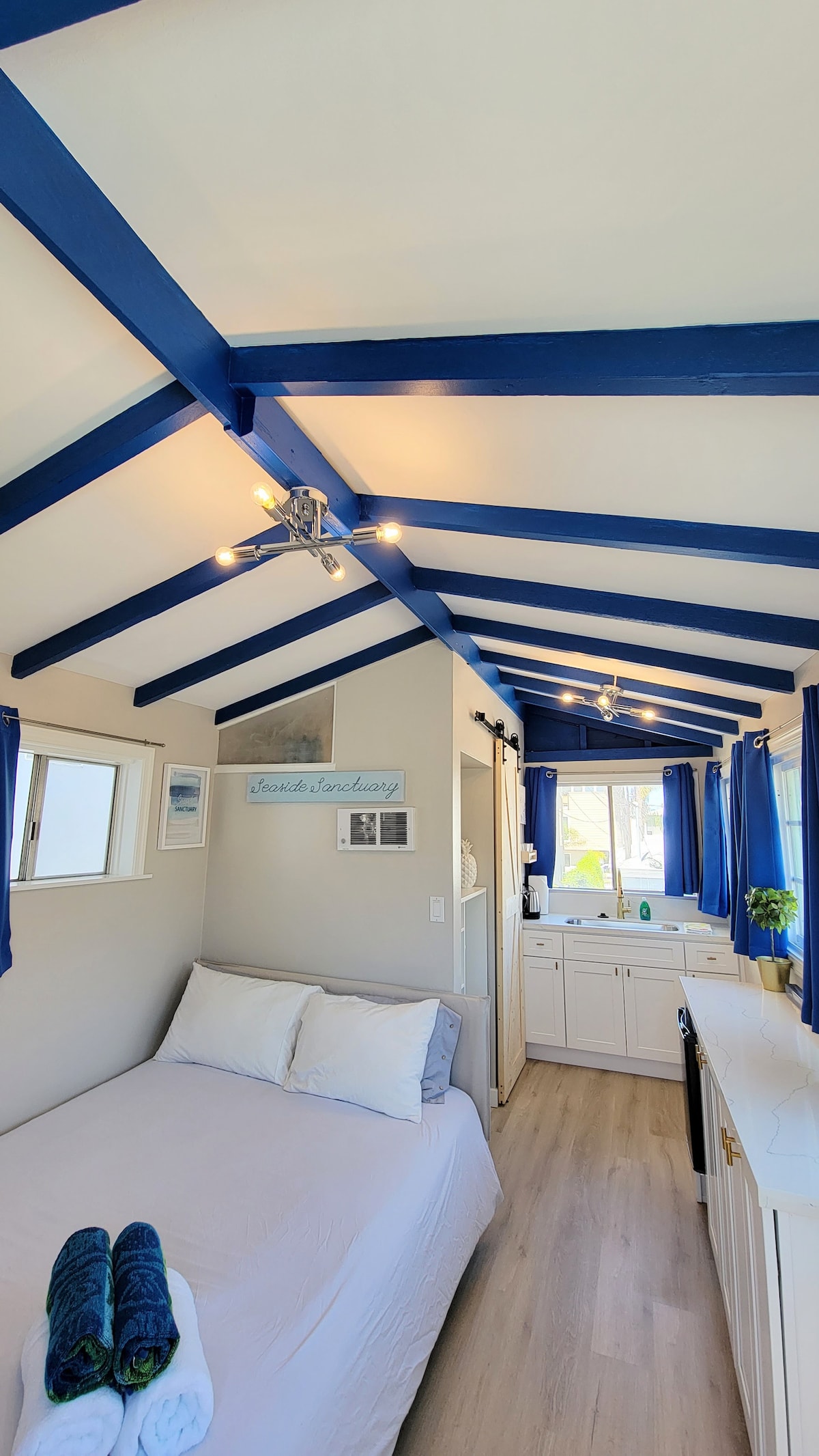 Located in the heart of Normal Heights, where everything is walkable; pubs, markets, cafes. Local’s favorite! The LOFT is a spacious open-space studio loft, in a stand-alone cottage. Whether you fall in love with the vaulted-beamed ceilings, the Loft-style open kitchen, the clawfoot tub, the art & decor, or the lush landscaping, you won’t likely forget this place any time soon. Everywhere you turn is a feast for your eyes. We’ve ensured that comfort is as much of a priority as is beauty.