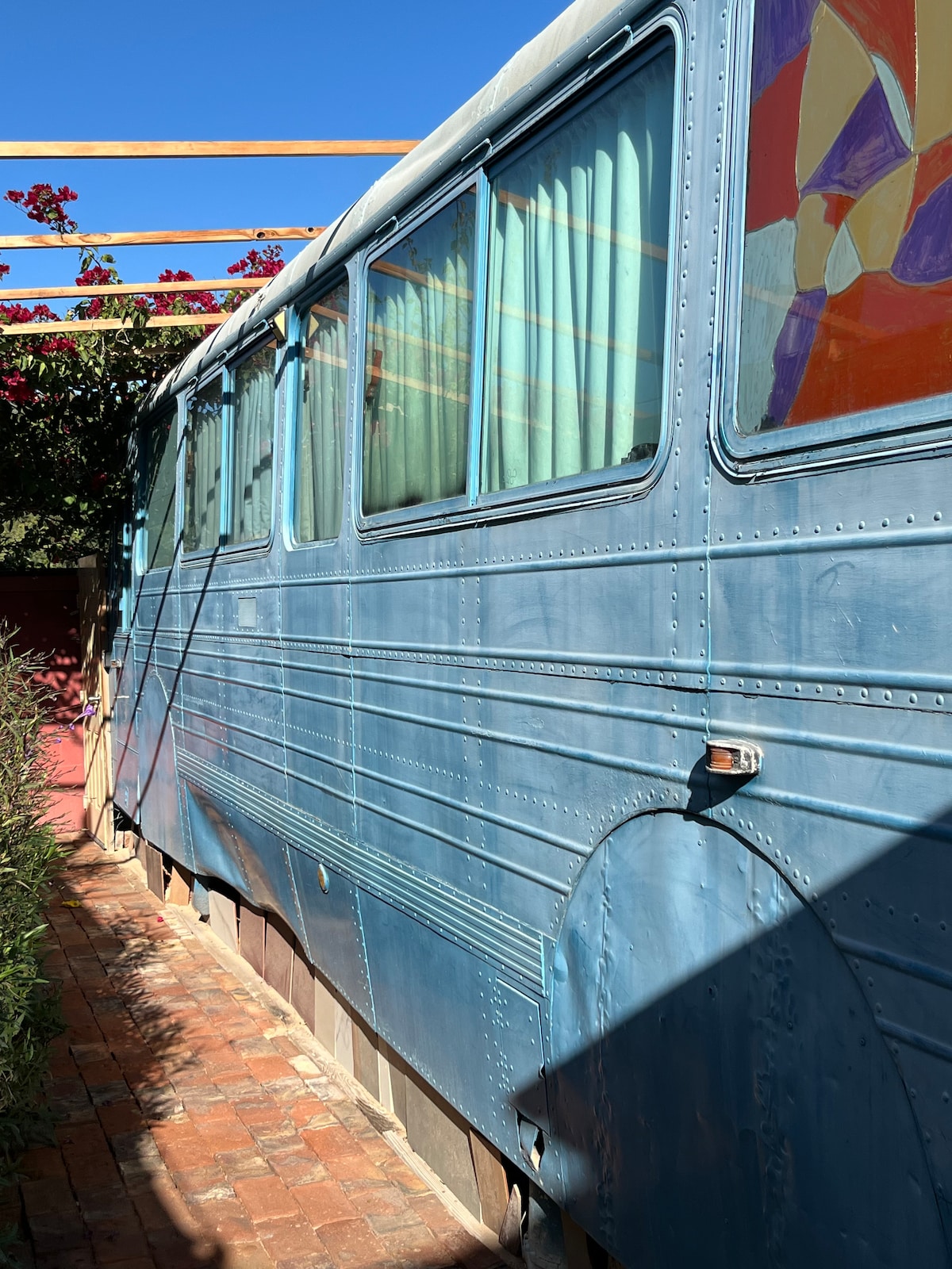 Il Blue Ride è un pulmino blu della città di Seattle, ritirato dal servizio e abbandonato nel deserto, che abbiamo deciso di rimodellare in una piccola casa accogliente. Abbiamo creato uno spazio aperto con tutti i comfort di una casa. Cucina, soggiorno, zona notte, spazio TV, scrivania retrattile, bagno con acqua calda, patio privato con barbecue e camino, aria condizionata, luce del cielo. Ora è davvero confortevole e unica.
