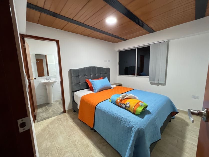Refugio para tres es un espacio acogedor ideal para familias o grupos pequeños. Cuenta con una cama doble y una sencilla, baño privado y TV, todo pensado para tu comodidad. Te recibimos con una sonrisa y cada mañana te consentimos con un delicioso desayuno casero para empezar el día con energía y buen ánimo.