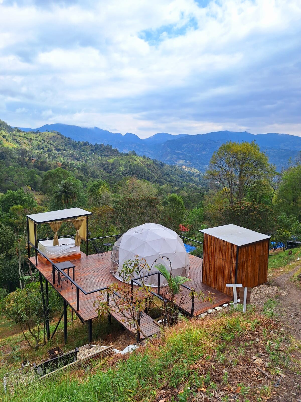 Escápate a este exclusivo glamping para 2 personas, ideal para desconectarse en medio de la naturaleza, con una vista espectacular a los montañas que puedes apreciar desde la maya catamarán. Tu estadía incluye: Jacuzzi privado (climatizado) y sin límite de tiempo 2 copas de sangría kit de fogata Desayuno