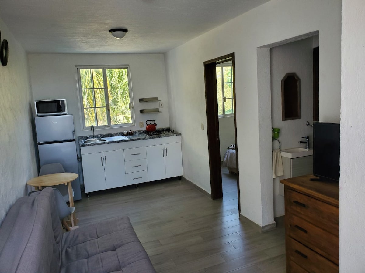 Piccolo appartamento tipo Loft con tutto il necessario per un soggiorno piacevole -Cucina privata con grill, frigorifero, microonde, utensili; risparmia e prepara il tuo super - Piccolo e spazioso bagno privato - Ampia scrivania e Wi-Fi veloce, lavora da qui - Letto matrimoniale, riposa e guarda la Smart TV su un comodo materasso - Spazio sufficiente, riponi i vestiti piegati o appesi - Ampie finestre, grande illuminazione e ventilazione Ottima posizione per turismo, viaggio di lavoro, studenti o coppia