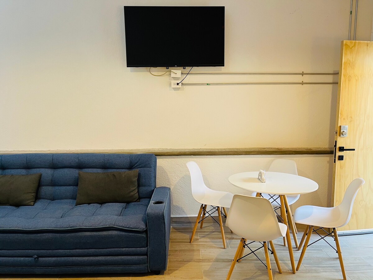 Loft moderno y completamente equipado en el corazón del Centro Histórico de Querétaro. Ideal para parejas, viajeros de trabajo o estancias medias. Cuenta con: • Tapanco con cama QS • Sofá cama matrimonial • Aire acondicionado • Cocineta equipada • Baño completo privado • Comedor para 4 personas • TV y excelente ubicación A solo unos pasos de restaurantes, cafés, museos y todo lo mejor del centro. Perfecto para disfrutar la ciudad caminando o trabajar cómodamente durante tu estancia.
