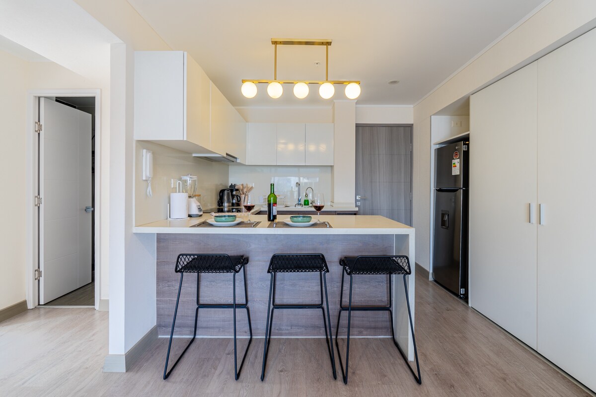 Goditi una vacanza all'insegna dello stile in questo appartamento nel cuore del centro finanziario di San Isidro, una zona sicura circondata da ristoranti, supermercati, negozi, banche, tutti raggiungibili a piedi La camera da letto ha un letto matrimoniale, TV da 43", soggiorno con divano letto matrimoniale, TV da 43", angolo cottura completo, balcone con vista sul Parco Andrés Reyes. Wifi da 850 MBPS Aree comuni: piscina, vasca idromassaggio, palestra, lavanderia, lounge bar, zona animali domestici