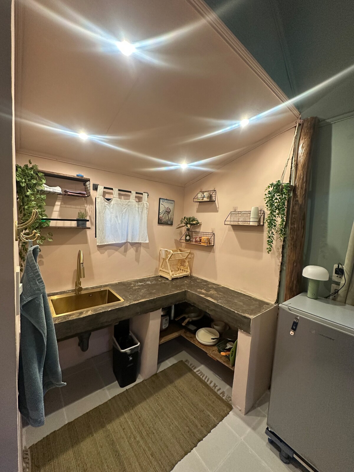 Uno spazio accogliente e familiare a solo 1 minuto dalla spiaggia. Questa casa include: – Piccolo angolo cottura (fornello per il riso, bollitore, frigorifero, piano cottura elettrico singolo) – Bagno privato con acqua calda – Aria condizionata con finestra + elettroventilatore – Lampade da comodino ricaricabili – Un piccolo altoparlante con microfono – Un comodo letto queen-size con materasso in memory foam – Circondato da piante verdi e buone atmosfere Viviamo nelle vicinanze e siamo felici di aiutarti. Vieni così come sei e goditi la vita sull'isola.