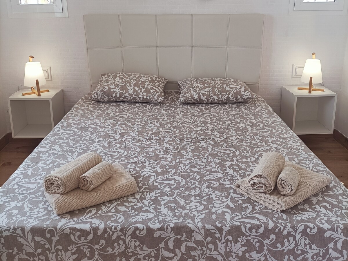 Benvenuto a F4 - Suites Bella Vistas, un lussuoso appartamento su due piani con vista mozzafiato su Son Bou. Goditi una camera da letto principale con bagno privato e terrazza privata, due camere doppie e una moderna zona giorno con una Smart TV 4K da 55 pollici. La cucina completamente attrezzata include lavastoviglie, friggitrice ad aria e altro ancora. Servizi: wifi gratuito, aria condizionata, barbecue a gas. Pacchetto di benvenuto gratuito incluso. Ti consigliamo di noleggiare un'auto per affrontare la ripida collina e per esplorare Minorca.
