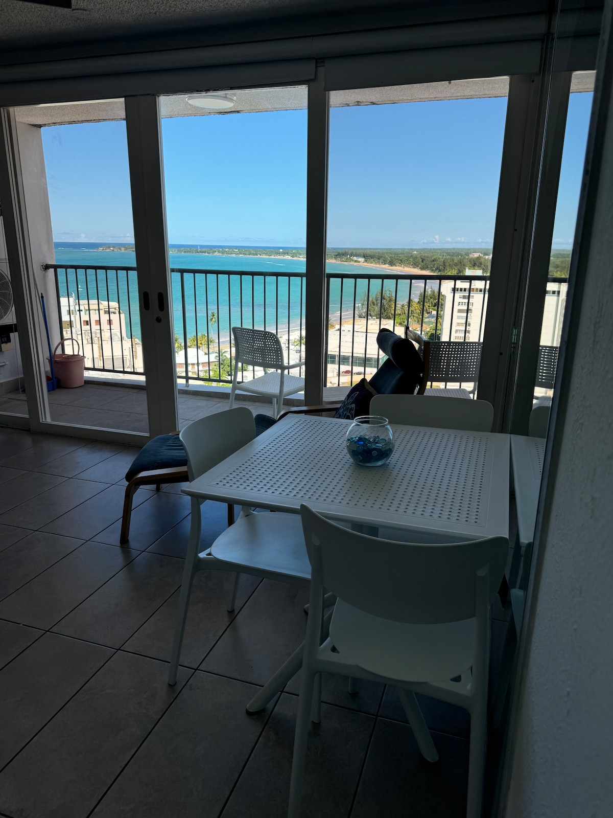Di fronte all'oceano! Balcone. Pavimenti in piastrelle di cemento. Cucina e bagno aggiornati. Attrezzato per una bella vacanza al mare. Wi-Fi, 2 grandi TV a schermo piatto. Splendida vista sull'oceano e sulla spiaggia. Balcone privato. Questo appartamento si trova sulla spiaggia e dispone di piscina, campi sportivi, cortili, barbecue e area picnic e area esterna per fare esercizio. Siamo situati a soli 10 minuti dall'aeroporto di San Juan (SJU). Condividiamo la stessa spiaggia di sabbia bianca e liscia con il famoso El Juan Hotel e altri hotel a 5 stelle.