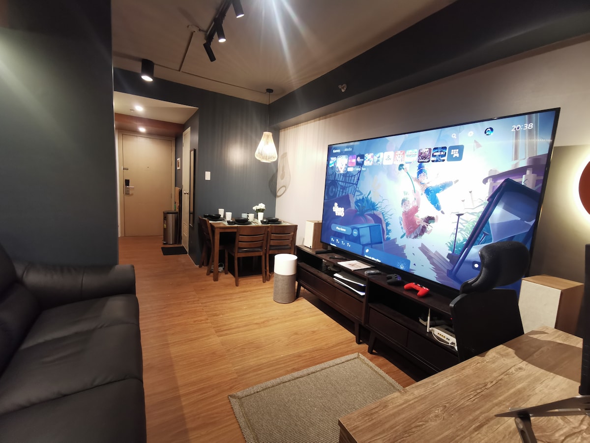 TV da 85 pollici con PS5 Nome dell'appartamento: Mplace South Triangle Posizione: Mother Ignacia Ave. vicino ad ABS CBN Caratteristiche: *Smart TV 4K HDR da 85 pollici *PlayStation 5 *Materasso da provare (migliore di quelli degli hotel) *Klipsch "The Fives" (ottimo sistema audio) *WorkStation con monitor da 27 pollici 1440p 144hrz *Connessione Internet in fibra da 50 Mbps. *Account Netflix Premium. *Doccia calda e fredda *Utensili da cucina e da pranzo.