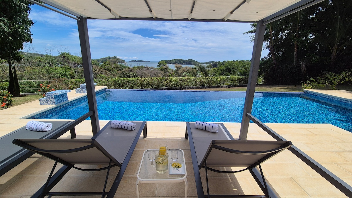 Villa moderna sulla spiaggia con vista panoramica a 180° sull'oceano e sulle isole del Parco nazionale del Golfo di Chiriqui. Concetto aperto, spazi interni ed esterni con piscina privata e ampie terrazze per rilassarsi, ammirare i tramonti e osservare le stelle. Arroccata su una scogliera con accesso diretto alla spiaggia. Brezze oceaniche, uccelli tropicali, scimmie esotiche, iguane e delfini nella baia. Comunità privata recintata. Ampia spiaggia di sabbia, perfetta per nuotare, fare boogie board, lunghe passeggiate, giocare a bocce o semplicemente rilassarsi e godersi i suoni della natura.