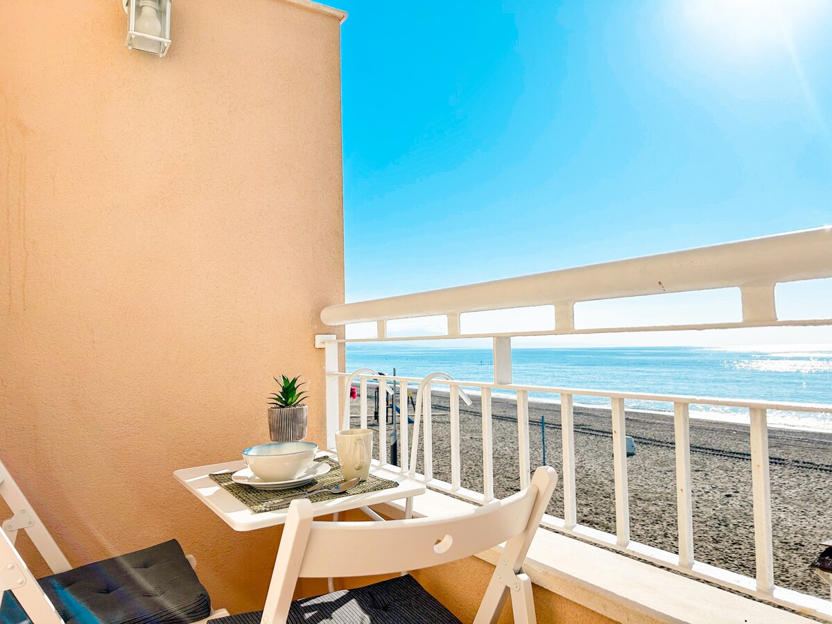 Appartamento fronte spiaggia, di fronte al mare, a La Noria IV, Sabinillas. Totale relax: dall'appartamento si sente il rumore delle onde del mare. Terrazza con splendida vista sul mare. Aria condizionata e riscaldamento. Area parcheggio. Comunità recintata, sicurezza 24 ore, portineria diurna, 2 piscine (una per bambini) con bagnino, 2 campi da paddle tennis, area bambini. Accesso diretto alla spiaggia e al lungomare con 2 bellissimi bar sulla spiaggia, molto vicino al centro di Sabinillas.