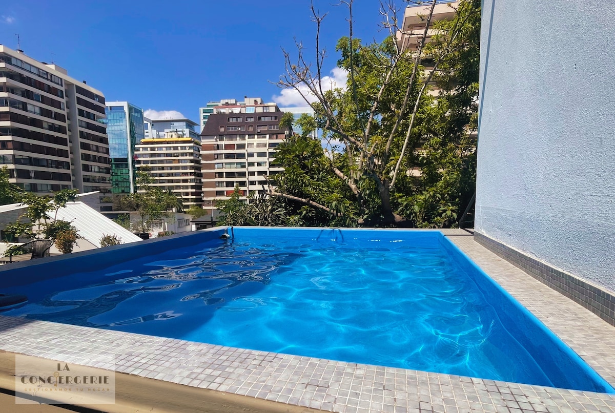 Vivi il lusso a Las Condes Questa residenza esclusiva offre ampi spazi riscaldati, una cucina attrezzata, camere da letto di alto livello (tra cui una suite con letto king-size) e una piscina privata, perfetta per rilassarsi in totale privacy. Situato in una zona sicura vicino all'ambasciata degli Stati Uniti, con facile accesso a ristoranti, boutique, centri commerciali e attrazioni culturali. Ideale per viaggi di lavoro o di piacere. Ti aspetta un soggiorno eccezionale.