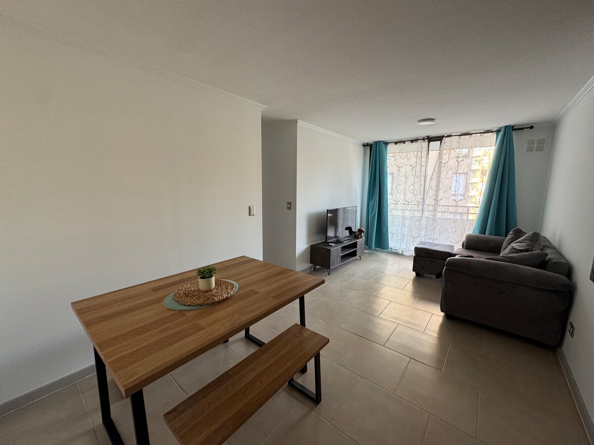 Departamento completamente amoblado para 5 personas a pasos de Playa Las Machas y Chinchorro situado dentro de condominio residencial con guardias. Excelente ubicación tranquila y segura, cercana a restaurantes, minimarket, lugares de venta de comida, plaza con juegos deportivos. Excelente conectividad. Ubicado en tercer piso sin ascensor. El depto consta de: 3 Dormitorios 1 Baño Cocina Lavadora Terraza con futón Wi-fi 2 TV con aplicaciones Estacionamiento Disponibilidad arriendo de auto diario