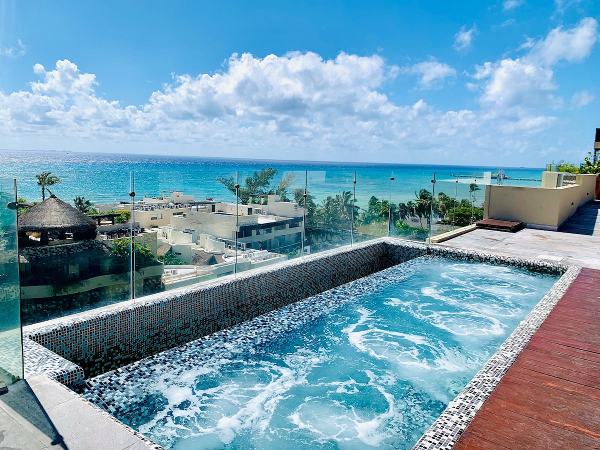 Fai una vacanza sulla tranquilla isola di Cozumel con amici o familiari. I servizi sono ideali per trascorrere una vacanza lì; goditi la vista sull'oceano, la vasca idromassaggio e la piscina. L'appartamento si trova in una ZONA LIBERA DALLE ALGHE SARGASSUM. C'è la possibilità di noleggiare un servizio di pulizia e cucina durante il soggiorno, nonché il noleggio di biciclette e SUP.