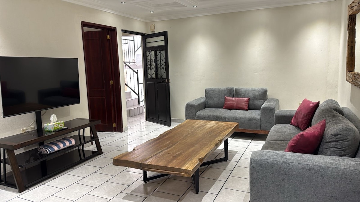 Cómodo departamento privado en un segundo piso, en Santa Maria de El Valle Jalisco. Una recámara con baño privado, Amplia sala con 2 sofá cama, Medio baño extra en la entrada incluido: wifi, Nexflix cable, plancha, secadora, ganchos para la ropa, refrigerador, cafetera, microondas, utensilios, jabón shampoo.