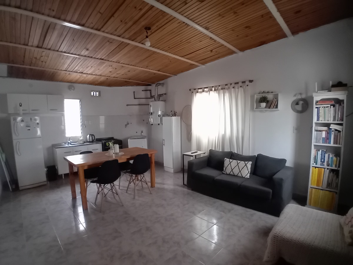 Disfrutá de la comodidad de este alojamiento a pocas cuadras del microcentro, ideal para viajes de trabajo, escapadas en pareja o pasar unos días a conocer la ciudad. El espacio cuenta con: • 🛏️ Habitación con cama matrimonial • 🛋️ Sofá cama en el living para huéspedes adicionales • ❄️ 2 aires acondicionados frío/calor • 🍳 Cocina equipada • 🚿 Baño y lavamanos separados • 📺 WiFi y TV • 🚗 Cochera privada y techada para autos, no camionetas grandeos