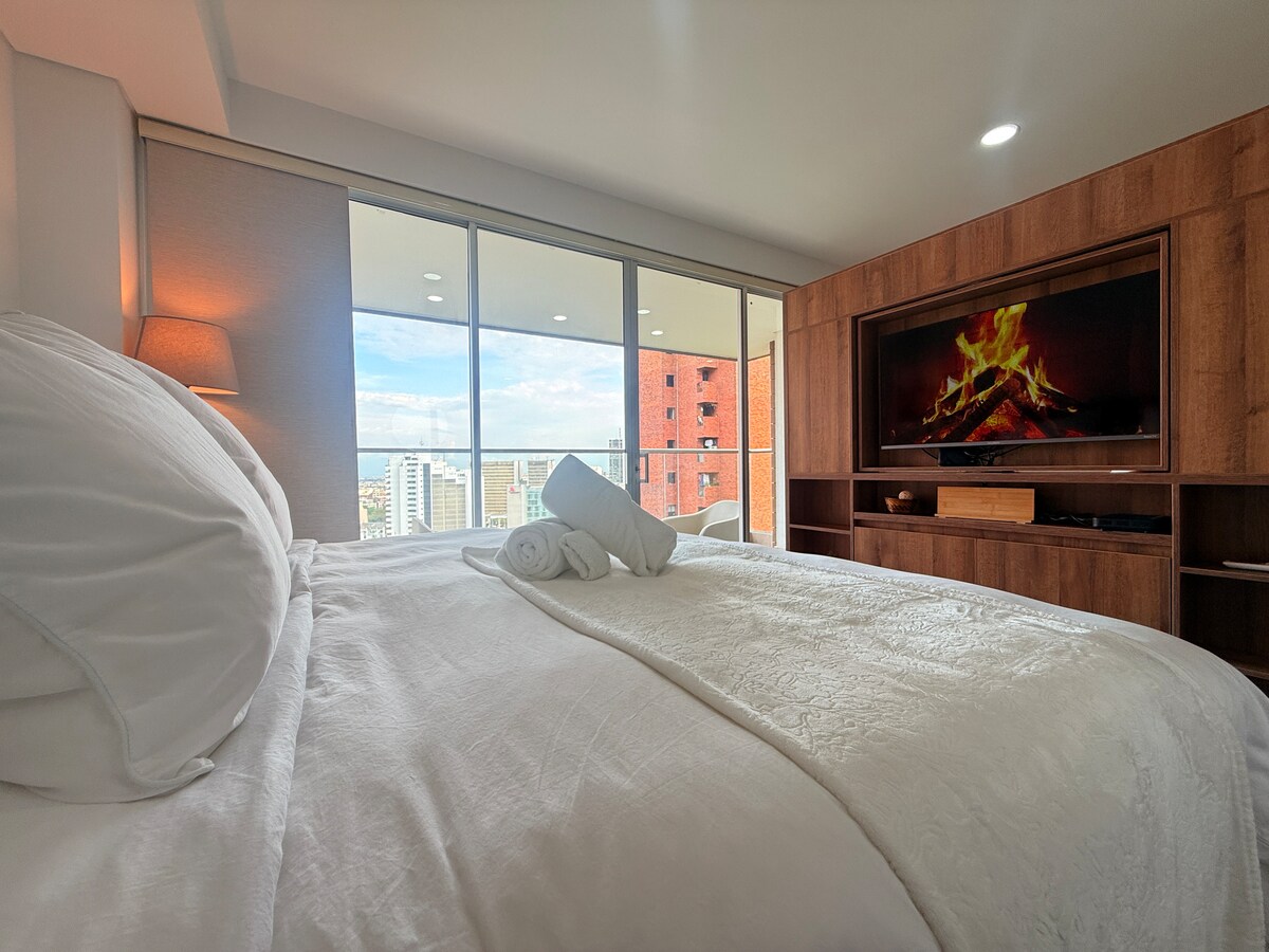 🌴 EXSTR Apartment • ERE Centenario Luxury Suites Enjoy premium comfort in this elegant 1-bed / 1-bath studio, perfectly located in walkable Centenario — steps from the culture, gastronomy, and nightlife of Bulevar del Río and Granada. Designed for your well-being, it features a European King bed, A/C, SmartTV, unlimited hot water, a fully equipped kitchen, and dedicated fiber-optic internet with 99%+ uptime. Ideal for couples, solo travelers, executives, medical tourists, and digital nomads.