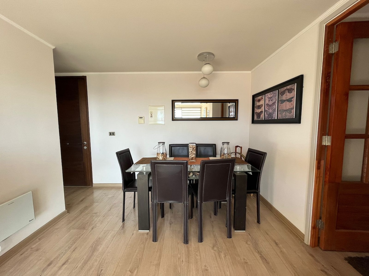 Goditi le tue vacanze vicino a bellissime spiagge. A meno di 1 ora da Bahía Inglesa. Questo posto unico ha il suo stile. Condominio molto tranquillo ideale per riposare. A pochi passi da Casinò, supermercati, farmacie, Ospedale, Stadio Regionale e Parco Schneider. Ottimo settore, portineria 24 ore. Nuovo appartamento, completamente arredato, ingresso indipendente e con parcheggio privato.